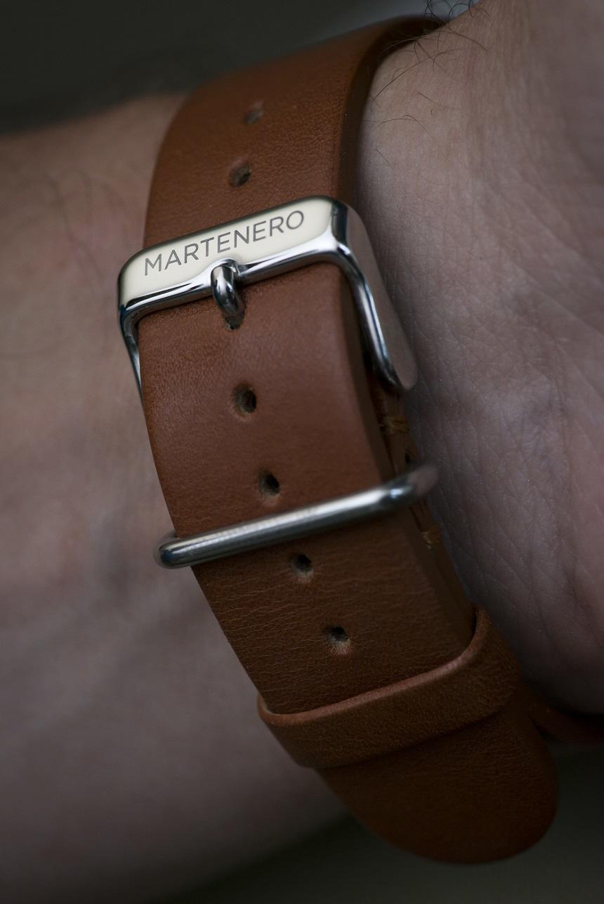 皮革和尼龍表帶均配有刻有 Martenero 品牌標(biāo)志的拋光帶扣,皮革表帶采用固定不銹鋼固定器和浮動皮革固定器的有趣組合。在佩戴帶有兩條表帶的手表并在許多不同的社交場合中佩戴后,我開始喜歡它如何將運(yùn)動風(fēng)格與整體優(yōu)雅外觀融為一體,使其成為任何場合的必備單品,具體取決于設(shè)置。