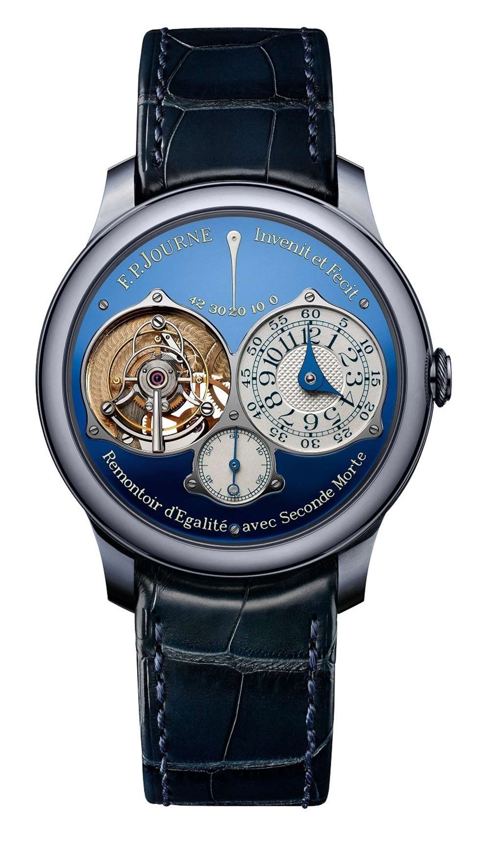 想要更多的藍色?然后你會喜歡我最喜歡的三重奏手表,一個藍色和鉭版本的 FP Journe Tourbillon Souverain,被稱為 Tourbillon Souverain Bleu。對于這款獨特的表款,FP Journe 基本上將 Chronometre Bleu 和 Tourbillon Souverain 組合成一個新表款。話雖如此,這款 FP Journe Tourbillon Souverain Bleu 的表盤可能更像是鏡像(與 Chronometre Bleu 相比)。看到機芯的復雜性,以及鉭金屬表殼和 18k 玫瑰金自制 FP Journe 機芯之間的對比,這很可能是一個令人驚嘆的模型。