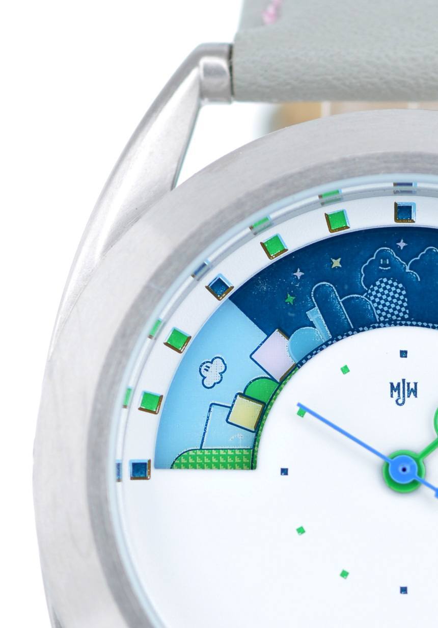 Mr. Jones Watches Sun and Moon Miyamoto 本質上是一款手表,帶有一個用于分秒的小表盤,以及一個出現在窗口中的圓盤,每 24 小時旋轉一圈。這張光盤就是您讀取小時數的方式。Mr. Jones Watches 制作了多款主題各異的 Sun 和 Moon 腕表,最新推出的是帶有卡通超級馬里奧兄弟世界的 Miyamoto,而且其中很多都是限量版。