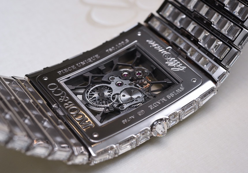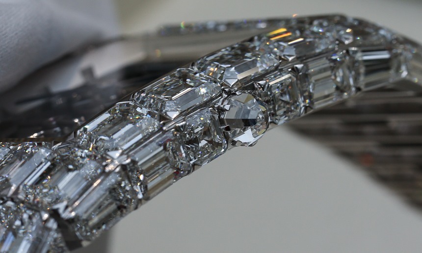 就個(gè)人而言,Jacob & Co. Billionaire 手表非常平易近人。雖然您可能對(duì)其設(shè)計(jì)有不同的看法,但這并不是一件丑陋的物品。事實(shí)上,以其獨(dú)特的方式,我發(fā)現(xiàn) Jacob & Co. Billionaire 手表非常漂亮。質(zhì)量極佳,寶石都非常清晰,顏色也很好。長(zhǎng)方形切割鉆石不會(huì)像明亮式切割鉆石那樣折射光線,因此觀看 Billionaire 手表并不是一場(chǎng)令人眼花繚亂的閃閃發(fā)光的考驗(yàn)。相反,鉆石的大小和形狀確實(shí)能讓您欣賞到每顆鉆石的美。這就像在你的手腕上同時(shí)為世界上最美麗的女人佩戴了數(shù)十顆訂婚戒指。像這樣的時(shí)計(jì)的部分吸引力在于人們從它的全部含義中確定的累積含義,