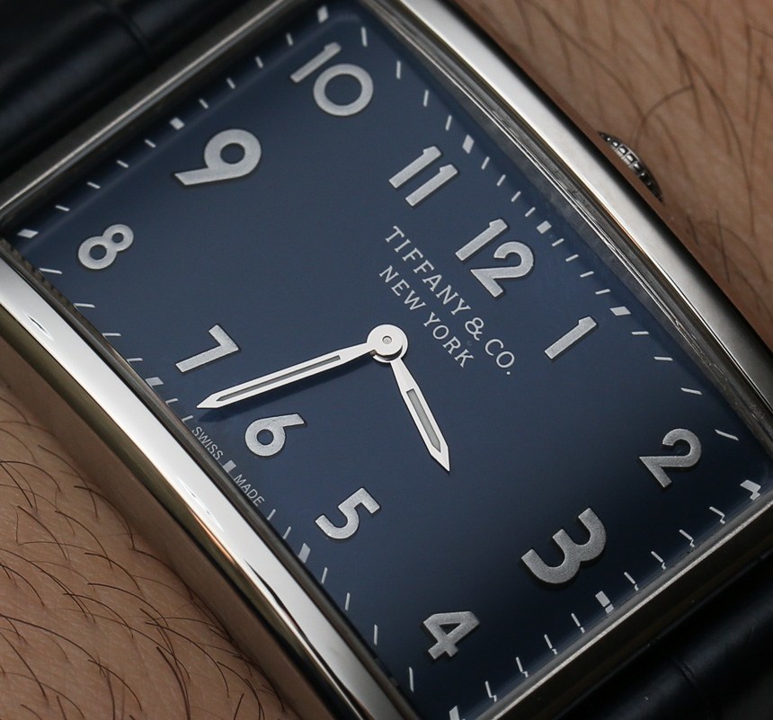 那么實際閱讀時間呢?那么這是一個很好的問題,現在不是嗎?像往常一樣看著您的手腕會迫使您在心里將表盤向左移動 45 度以上。有了完整的阿拉伯時標,這并不太難,但正如我上面提到的,時間確實在它的一邊。Tiffany & Co. East West 證明有用的地方是當您的手在您面前時,例如在開車或在電腦上打字時。從這個角度來看,閱讀時間實際上很容易……我敢說,與“標準”模擬手表表盤相比,Tiffany & Co. East West 更“容易”。