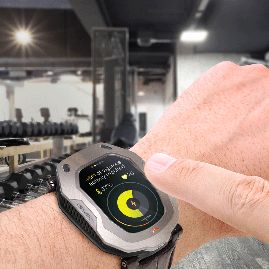 “先生,我的電池電量為 23%,我們今天沒有完成您的鍛煉目標。我可以推薦 46 分鐘的劇烈運動嗎?” 通過利用佩戴者定期鍛煉的需要,Urwerk HIS 手表可以通過提醒佩戴者該運動了來滿足兩個目標——健身和電池充電。鍛煉會產生熱量和運動,通過達到一個人的健身目標,Urwerk HIS 手表可能會持續數周而無需使用外部方式充電。Urwerk HIS 還可以就其需要多少能量提出智能建議。對于輕度充電,它可能會建議以快走的形式進行鍛煉。在電池壽命低得多的情況下,它可以通過說“先生,您對跑步感到無聊。試試網球。