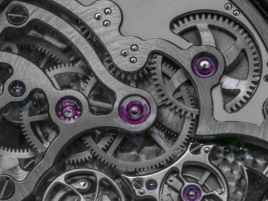內部制造的 HUB 8001 機芯是手動上弦的,具有 5 天的動力儲存,以 3Hz 運行(我相信)。Hublot 實際上聲稱它有一個“雙重大教堂鐘聲”,可能是因為它有兩個音簧。該機芯由 319 個零件進一步生產——對于這樣的機芯來說效率相對較高。