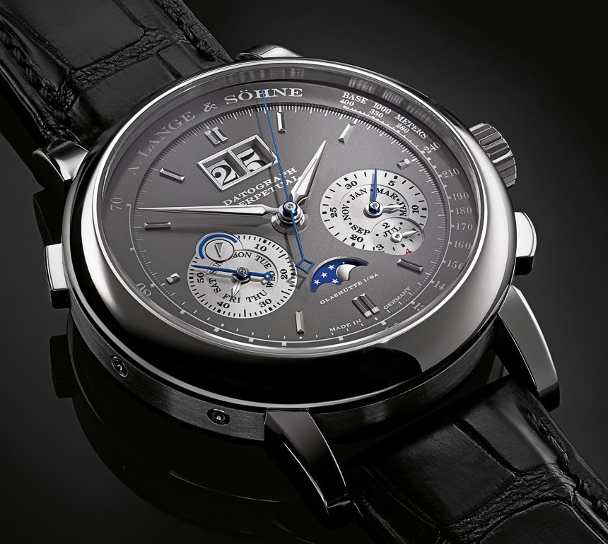 A. Lange & S?hne 正在為一系列 Datograph Perpetual 手表(下線)做準備,這款 2015 年款采用 41 毫米寬 18k 白金表殼和啞光灰色表盤。當然,A. Lange & S?hne Datograph Perpetual 沒有原始 Datograph 或更現代的 Datograph Up/Down 的崇高簡潔,但它通過添加各種日歷復雜功能確實增加了賭注。這也不是一個全新的機芯,而是適應為流行的 Datograph 系列帶來更多功能的需求。廣告留言廣告信息結束