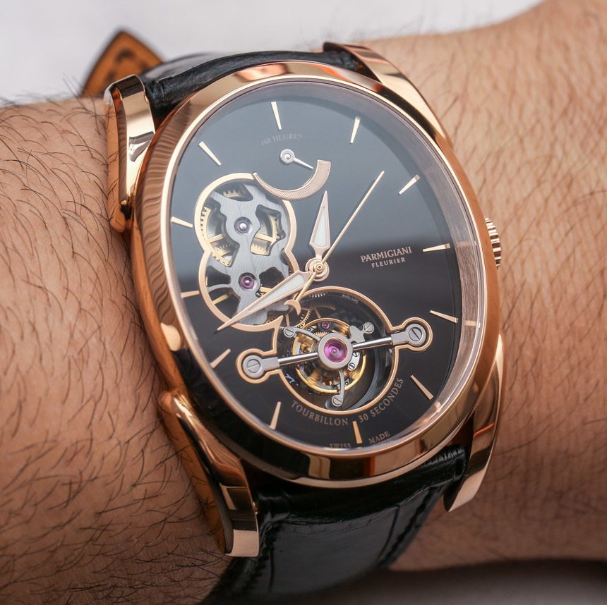 我也喜歡機(jī)芯上的深色飾面,我發(fā)現(xiàn)這是對經(jīng)典而現(xiàn)代的設(shè)計的一種現(xiàn)代品味的歡迎。事實上,Parmigiani 等品牌和 Piaget 等其他品牌都非常擅長制作具有傳統(tǒng)吸引力的手表,但這些手表顯然是當(dāng)今的產(chǎn)品。這個特別的參考。Parmigiani Ovale Tourbillon PFH750-1003800 版本采用 18k 玫瑰金表殼,但也有不同版本采用 18k 白金表殼和完全不同的表盤(飾有垂直日內(nèi)瓦條紋)。每個都是限量版的一部分。