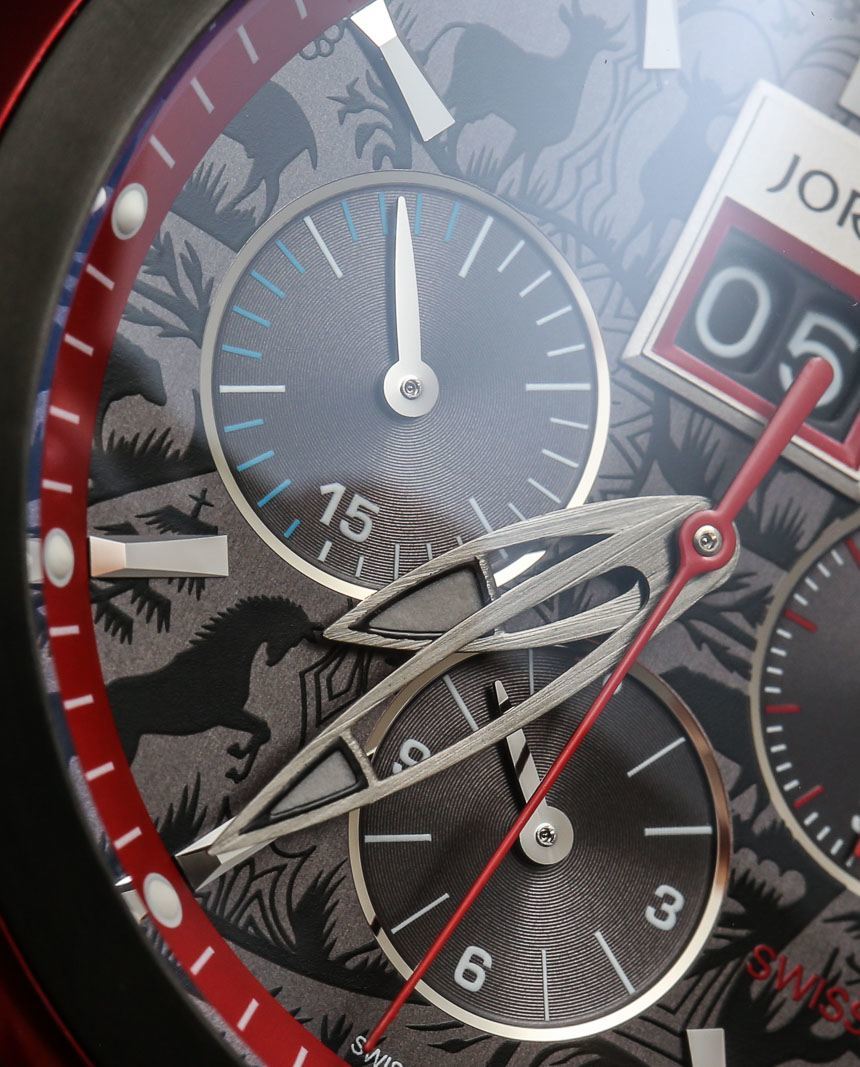 Jordi 指出,紅色地平線計(jì)時(shí)碼表的設(shè)計(jì)靈感不僅來(lái)自瑞士文化,還來(lái)自大自然。“紅色地平線”這個(gè)名字意在暗指瑞士阿爾卑斯山的日落,而據(jù)說(shuō)表盤的靈感來(lái)自瑞士當(dāng)?shù)貍鹘y(tǒng)的剪紙藝術(shù)形式。這種靈感始于旨在類似于剪刀的手本身。乍一看,我絕不會(huì)認(rèn)為手就像剪刀,但了解了這種聯(lián)系后,我發(fā)現(xiàn)了相似之處。