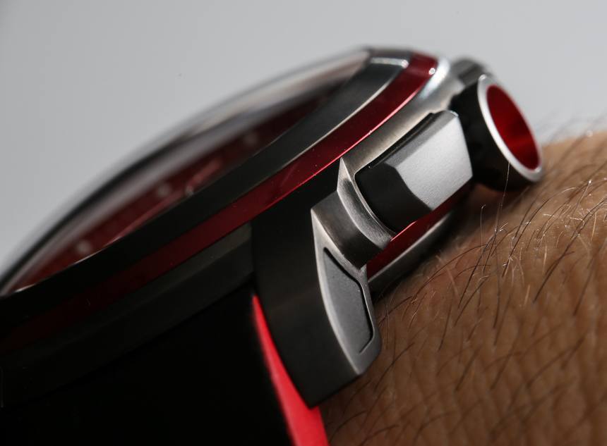 案例中元素的整合很有趣,而且大多是和諧的。任何佩戴 Jordi Chronograph Red Horizo??n 的人肯定會(huì)覺(jué)得它是一款非常不同類型的手表,但它與其他類似時(shí)計(jì)的表現(xiàn)差異不大。就其尺寸而言,由于主要采用鈦結(jié)構(gòu),表殼感覺(jué)很輕。該表殼的防水深度可達(dá) 100 米。
