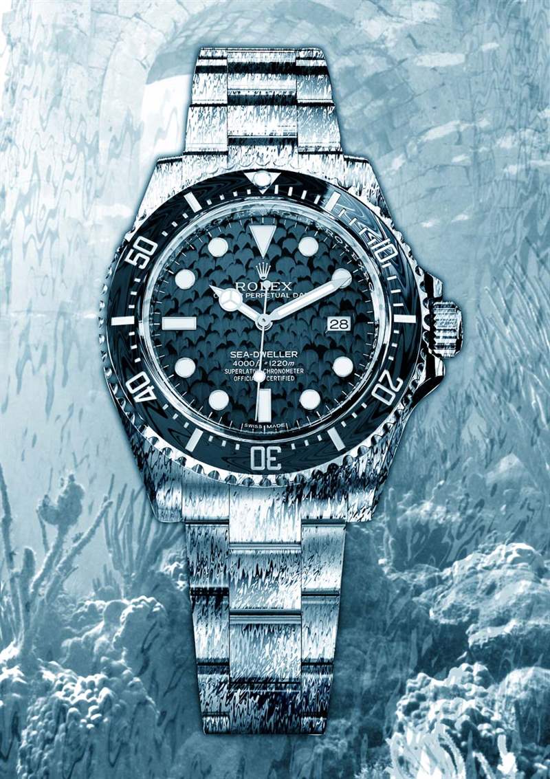 潛水表的靈感來自水嗎?是和不是。勞力士 Sea-Dweller 4000 Water 概念就是這樣,并從流動的液體和海洋生物中汲取靈感。Niklas 將這款 Sea-Dweller 設計想象成“大馬士革鋼,具有流動的幾乎液態金屬表面的幻覺。它有一個帶有特寫鯊魚皮圖案的表盤。終極潛水表應該看起來像鯊魚一樣銳利!這是一款海洋生物手表,可能會愛或恐懼?;騼烧?!” 這是一個有趣且兩極分化的概念,再次借鑒了自然紋理和美學。