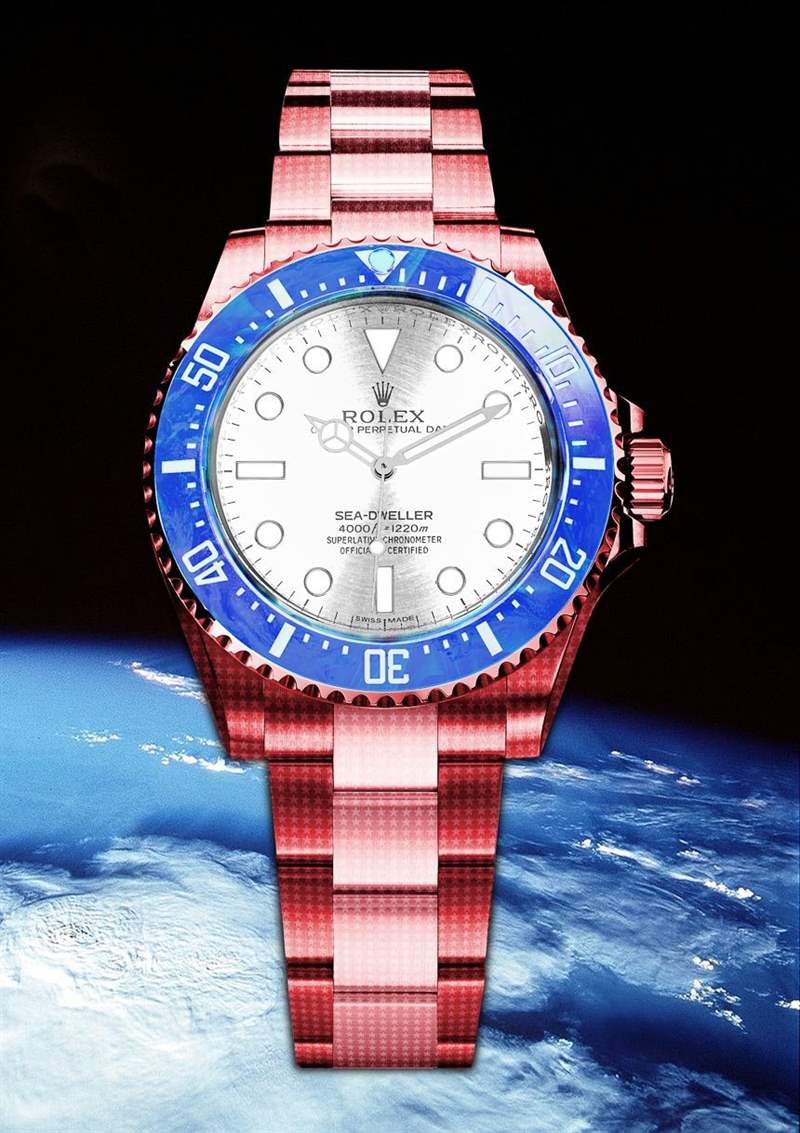 下一個靈感來自天空,即太空。這是對太空旅行成就以及手表如何成為慶?;顒又匾M成部分的一種近乎俗氣的看法。Rolex Sea-Dweller 4000 Space 是“為人類邁出一大步的人的手表!” 無論是在太空還是其他地方。這是“沒有。1 星表穿在星星之間!” 它玩弄奢華和星星的概念(因為它們是黃金質地的一部分)。