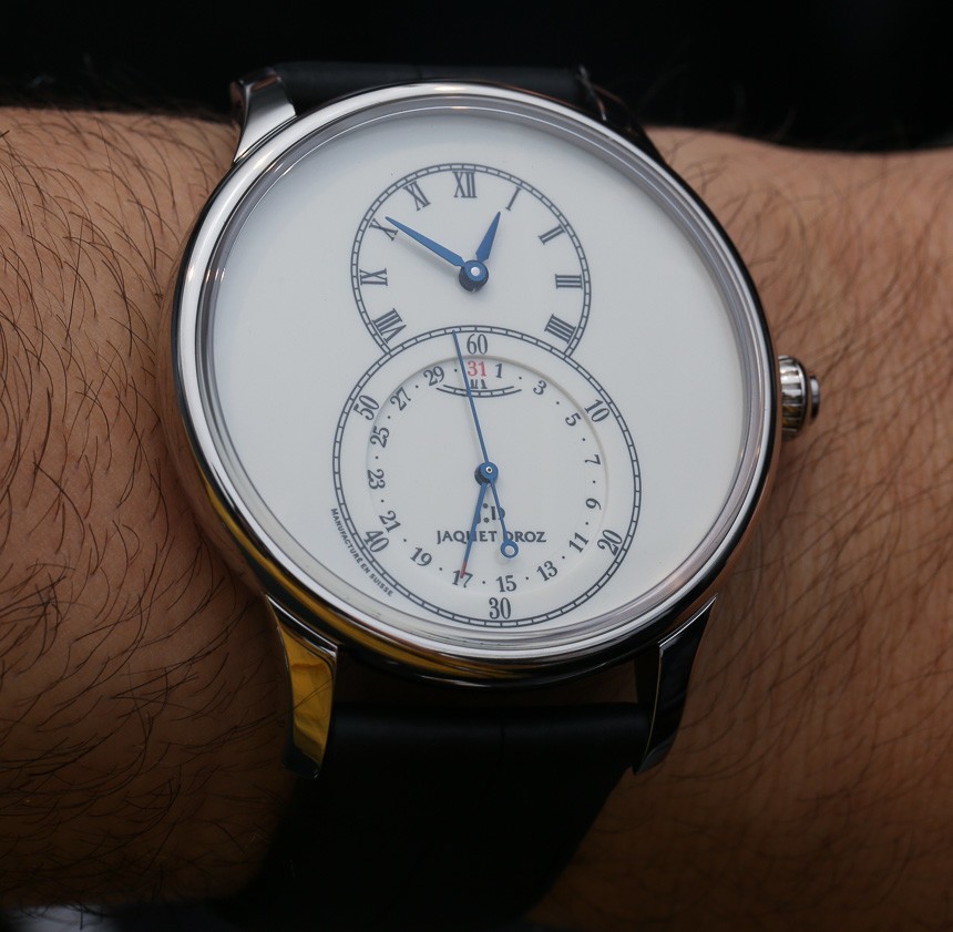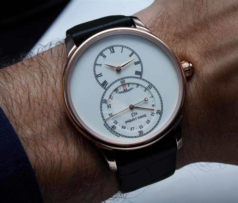 我發現自己常問的一個常見問題是雅克德羅大秒針腕表系列是否適合正裝或休閑裝——或兩者兼而有之。它不完全是一款表殼更結實但更精致的正裝表,也不是一款外觀和表盤設計更優雅(防水深度僅為 30 米)的運動表。我見過在公共場合佩戴 Jaquet Droz Grande Seconde 手表的人往往是獨立的思想家,具有時尚的風格,而且通常對手表情有獨鐘。無論雅克德羅 (Jaquet Droz) 手表多么優雅或古怪,該品牌都無可否認地前衛——這使其在斯沃琪集團品牌中獨樹一幟。