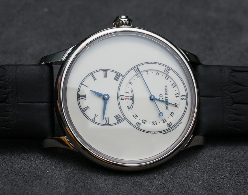 具有諷刺意味的是,Jaquet Droz?Grande Seconde Quantieme 腕表最初以鋼材發布,作為高端品牌的低價型號。這是在 2011 年,我們在這里對精鋼 Jaquet Droz Grande Second Quantieme 腕表進行了評論。2014 年,雅克德羅 (Jaquet Droz) 發布了這款“日歷”(quantieme) 大秒針腕表的黃金款和琺瑯表盤款的一些新版本。
