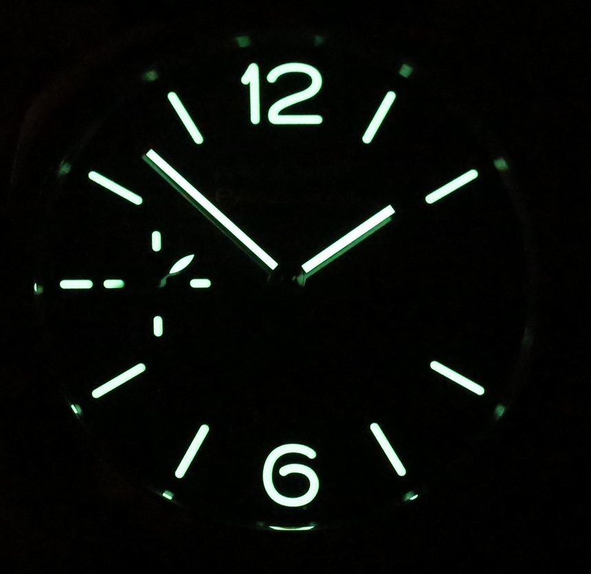 請注意,鑒于大型圓頂藍寶石水晶,拍攝大多數沛納海手表非常困難。即使沛納海涂上了抗反射涂層,也會有很多眩光。鑒于簡單的表盤和突出的指針和時標,它不會嚴重影響易讀性,但它是沛納海所有權體驗的一部分。