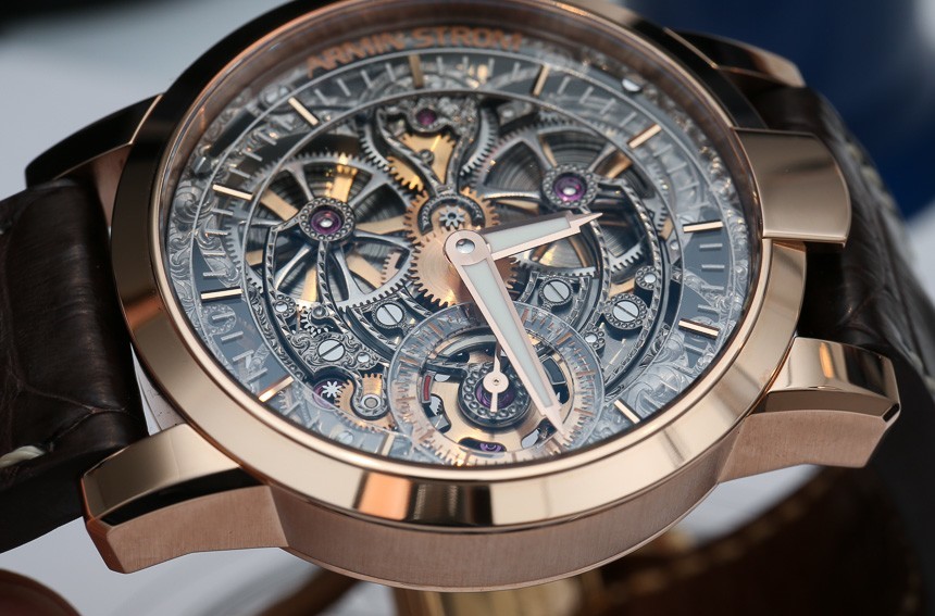事實證明,我所有的秘密關注只會讓事情變得更糟。我希望在私下看了 One Week Skeleton 足夠長的時間后,我會忘記它,并認為它只是另一種暫時的手表迷戀。然而這一次我認為鐘表的欲望太深了。Armin Strom 采用 43.40 毫米寬的表殼,由拋光和拉絲 18k 玫瑰金制成,包括他們慣用的“表殼標簽”,用于簽名。沒錯,他們會將您的姓名首字母寫在表殼上,以表明您對他們手表的所有權。我多么想要一周骨架上的“AA”!廣告留言廣告信息結束