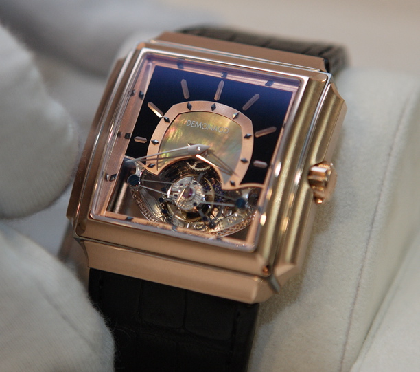 18k 玫瑰金或白金表殼寬 44.3 毫米,高 48 毫米,對于一款堅固的腕表來說,這是一個相當大的尺寸。這些手表的限量版只有18枚,但這應該是每個型號。設計有一些非常古老的世界,但面部的切割以及機芯的設計更加現代。我認為DeMonaco在試圖在這款手表中重現摩納哥的“實質”方面做得很好。就像我之前在Luxist上所說的那樣,表殼和外觀似乎更受建筑啟發,而不是傳統的鐘表靈感,這是一個新的節奏變化。