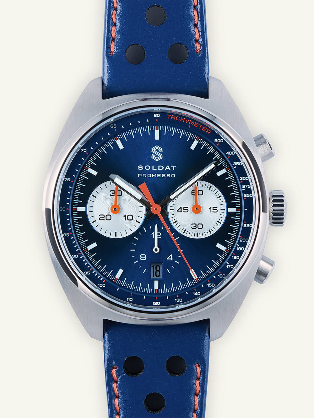Soldat Promessa 每種顏色僅限 100 件(我不認為綠色 49 會持續很長時間)Soldat Promessa 是對 Heuer 1153 的可愛、現代化的致敬,而且價格實惠。尼龍上的紅色版本只需 1,150 美元(略高于 880 英鎊),而皮革賽車表帶上的藍色和綠色版本則各 100 美元。