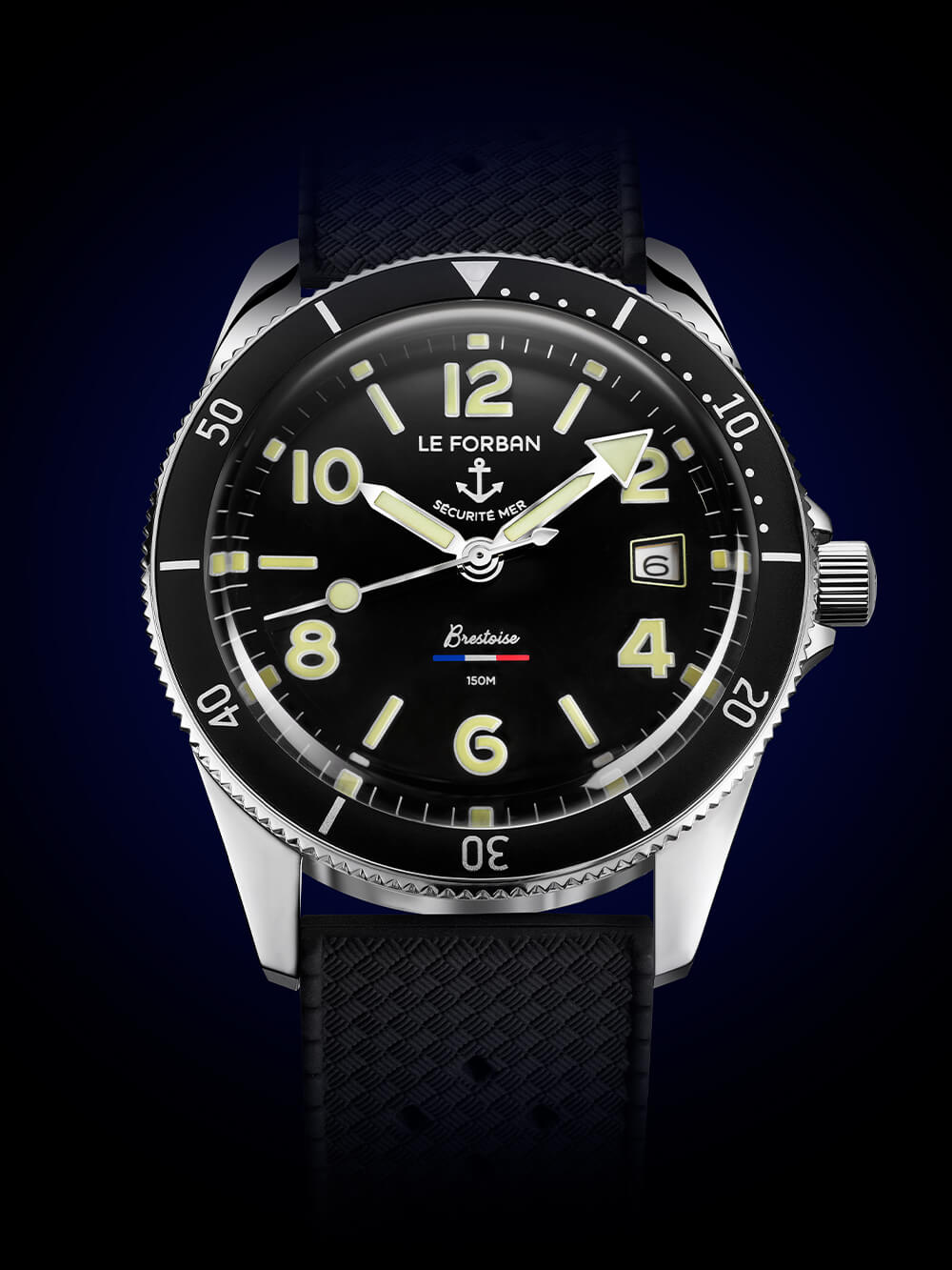 Brestoise 以法國港口城鎮布雷斯特命名,與 60 年代后期的潛水表保持一致。這意味著大而醒目的發光數字、清晰定義的指針(包括復古棒棒糖秒針)和單向旋轉潛水表圈。