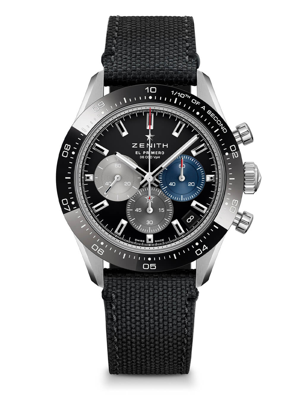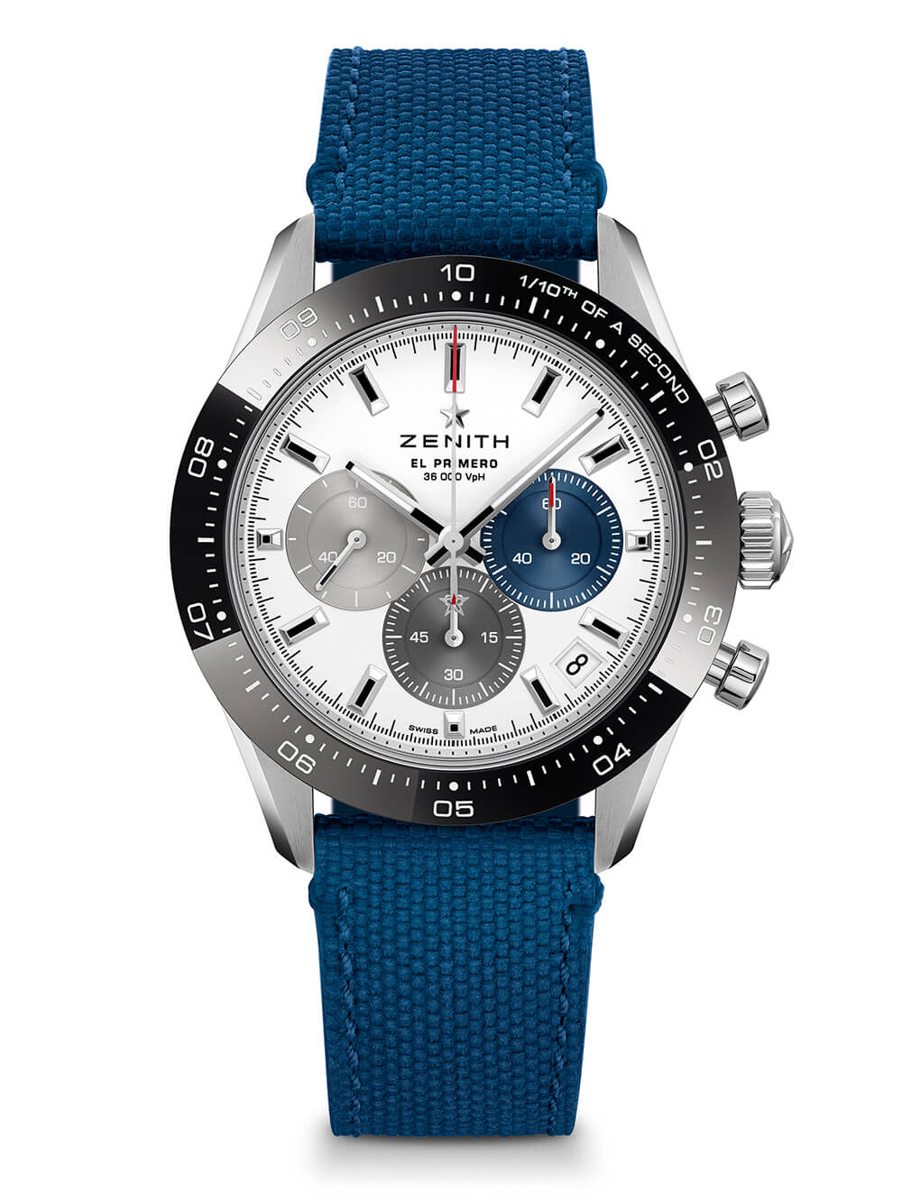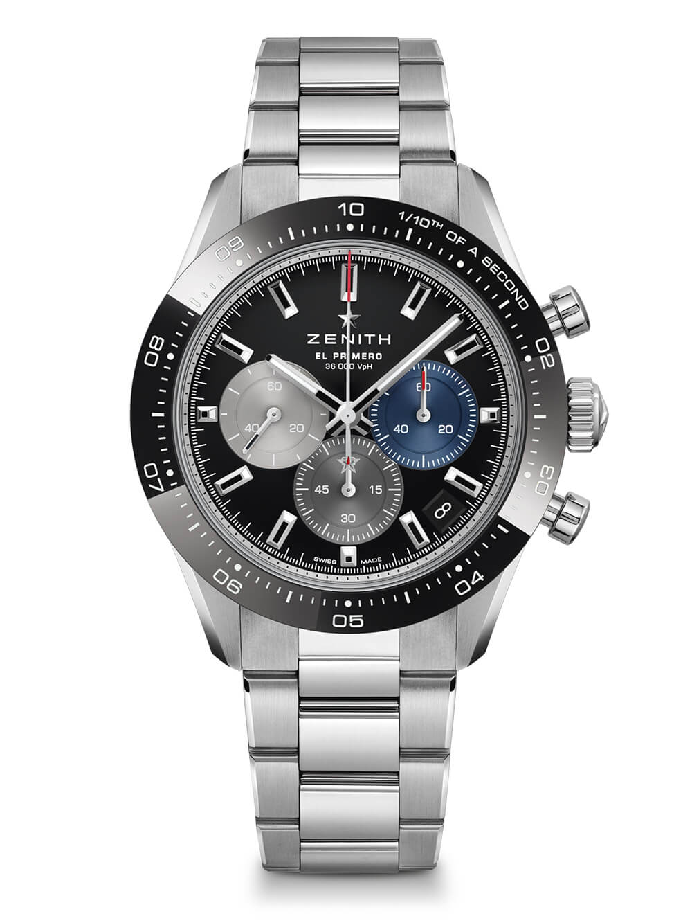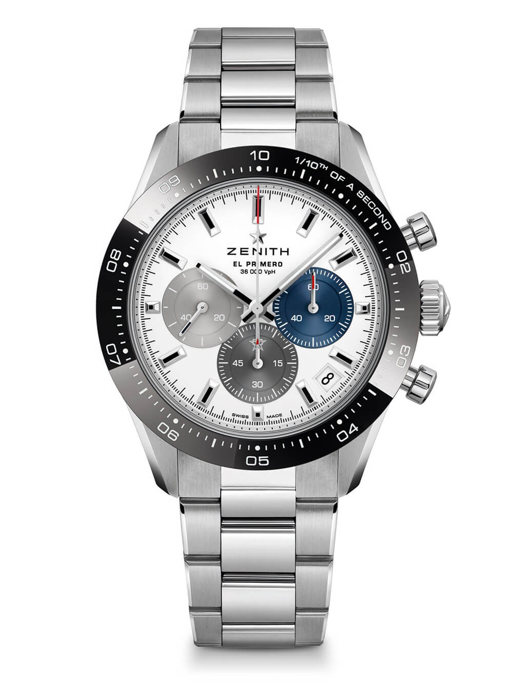 然后是全新的 41 毫米不銹鋼表殼,該表殼已被昵稱為 Zenith Daytona。您可以看到原因:三個帶有對比色表圈的小表盤。就連手也是一樣的。不過,這有點不公平——而且有點缺乏想象力。