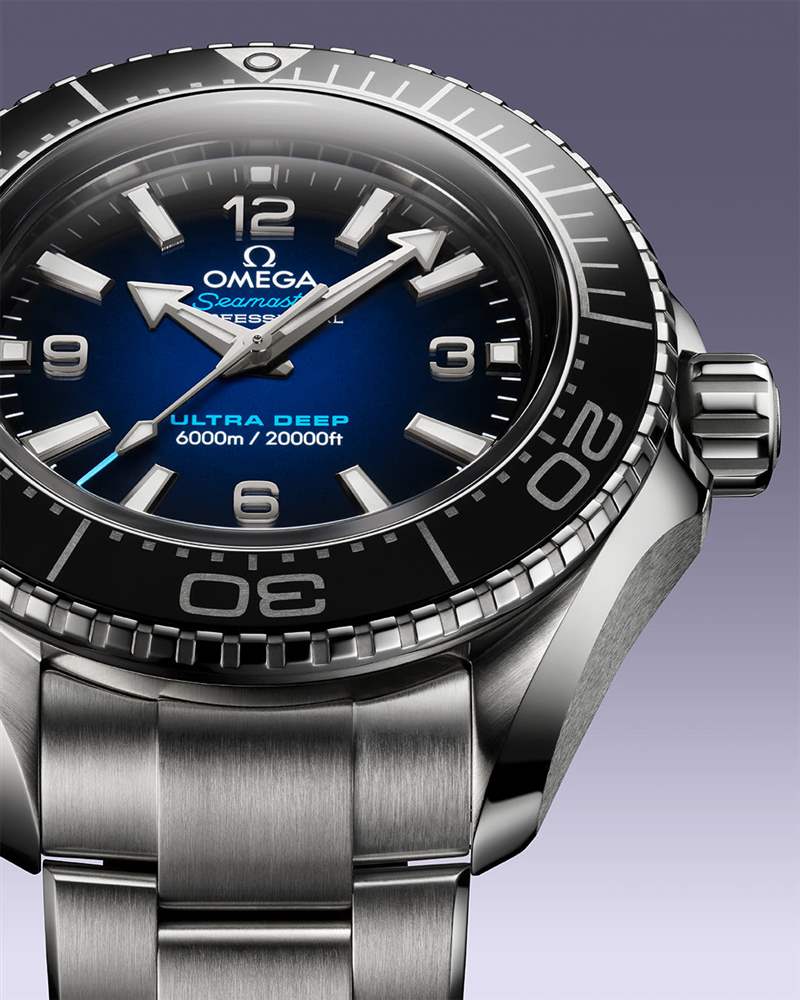 真正達到極限下潛深度的,當然非海洋宇宙腕表45.5毫米至臻天文臺 Ultra Deep?O MEGASTEEL 搭配橡膠表帶款莫屬,品牌在真實的海洋環境中對這款表進行測試,其防水深度高達6,000米(20,000英尺),并通過了國際標準化組織(ISO) 6425:2018有關飽和潛水表的認證。值得注意的是它的厚度僅為18.1毫米,重量約170克,完全接近普通日常實用的水平。透過其凸起的拱型藍寶石玻璃表鏡,可以看到亮漆表盤呈現從藍色到黑色的漸變效果,是其它常見的專業潛水表差別不大,也讓許多專業人士心生出將其作為日常用表的念頭。