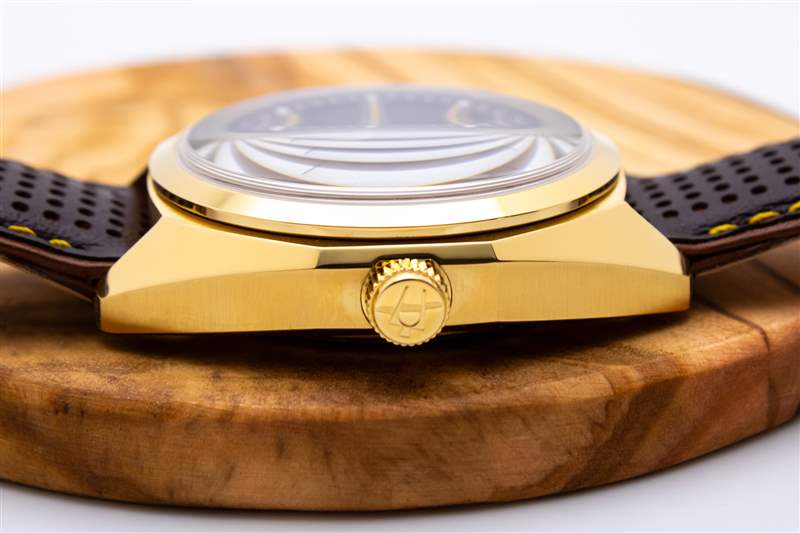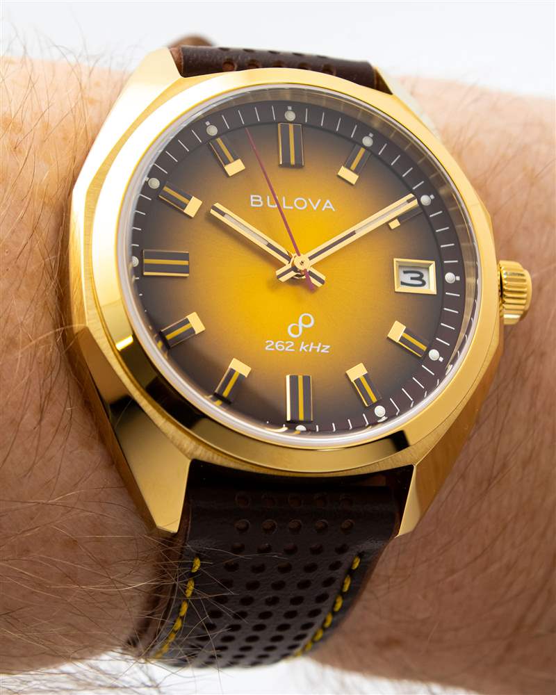 雖然 Bulova Jet Star 的金色不銹鋼表殼紙面寬度為 40 毫米,但由于表耳相對較短,實際上手表的佩戴寬度接近 38 毫米。這種形式也有裸露不銹鋼材質可供選擇,它跨越了緩和的傾斜曲線和寬角平面之間的界限。整體輪廓隱約呈八角形(與 1973 年原版的連續圓形曲線相反,但八角形表殼設計如今隨處可見),每個垂直拉絲表殼側面都分為三個不同的面。在此之上,上表殼表面和表耳由寬闊、突然張開的拋光平面塑造而成,提供了突出、明亮的反光表面,展示了金色表殼材料的溫暖和光澤。然而,寶洛華 (Bulova) 的目光超越了這些大元素,并將令人印象深刻的深思熟慮的細節融入到捷星航空設計的細節中。其中最令人印象深刻的是傾斜拋光表圈的下方。表圈與拋光上殼表面倒角之間的細長材質環并非簡單的拉絲或拋光飾面,而是采用獨特的旭日紋拉絲處理,與直射光線下表盤的旭日紋圖案相呼應,營造出統一的感覺。無論好壞,Bulova 對 Jet Star 的底蓋采用了忠實的老式方法,其特點是淺色、簡單的雕刻和略顯不足的 50 米防水性能。表圈與拋光上表殼表面倒角之間的細長材質環頂部飾有獨特的旭日紋拉絲,與直射光線下表盤的旭日紋圖案相呼應,營造出統一的感覺。無論好壞,Bulova 對 Jet Star 的底蓋采用了忠實的老式方法,其特點是淺色、簡單的雕刻和略顯不足的 50 米防水性能。表圈與拋光上表殼表面倒角之間的細長材質環頂部飾有獨特的旭日紋拉絲,與直射光線下表盤的旭日紋圖案相呼應,營造出統一的感覺。無論好壞,Bulova 對 Jet Star 的底蓋采用了忠實的老式方法,其特點是淺色、簡單的雕刻和略顯不足的 50 米防水性能。廣告留言廣告信息結束