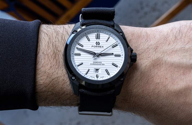 Essence Leggera 手表提供至少三種不同的 22 毫米寬表帶選項(包括橡膠、皮革或新的尼龍 NATO 風格表帶),有五種完全不同的表盤變體。我喜歡 Formex 不僅選擇了不同的顏色,而且除了各種顏色之外,還選擇了不同的飾面和樣式選項。例如,“Cool Grey”表盤是啞光的,而“Electric Blue”則是采用更閃亮的漸變效果。“曼巴綠”和“北極白”表盤也有水平裝飾線,而鍛造碳(價格略高)只是一塊黑色的鍛造碳材料,具有該材料的標志性紋理。老實說,表盤都很酷,但很難不喜歡白色表盤作為工具表。我想了一個未來的模型,用白色陶瓷表殼(和黑色陶瓷表圈)代替黑色碳纖維表殼來渲染這款手表會很有趣。盡管本文是關于展示 43 毫米寬的型號,但 41 毫米寬的 Essence Leggera 手表將提供相同的表盤選項。