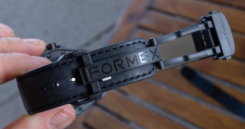 Leggera 手表的外殼由專有的黑色碳混合物制成,而表圈則由拋光的黑色陶瓷制成。表盤上方是 AR 涂層藍寶石水晶,表殼防水深度達 100 米。這些輕型手表(不含表帶)的重量對于 43 毫米寬的型號僅為 50 克,對于 41 毫米寬的型號為 40 克。除了表殼直徑和表耳到表耳的距離(49 毫米對 46.5 毫米),Essence Leggera 的兩個版本是相同的,包括 11 毫米厚的表殼尺寸。Formex 想要生產兩個版本的 Essence Leggera 只是為了滿足更廣泛的消費者需求,因為外殼尺寸偏好隨品味和解剖結構而變化。