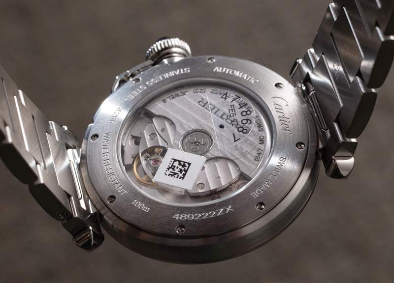 標準 Pasha 41 毫米自動上鏈的這種更基本的機芯執行是卡地亞內部制造的 1847 MC 自動上鏈機芯,通過底蓋可見,它以 4 赫茲的頻率運行,具有約兩天的動力儲備。Pasha 表殼沿用了當前一代 Santos 的主要卡地亞套裝,并包括其“QuickSwitch”手鏈附件系統。這使佩戴者可以輕松取下手鏈末端并用表帶替換它們 – 無需工具。手鐲還有一個“SmartLink”系統,可以很容易地調整手鐲的大小——這也是新款 Santos 引入的。廣告訊息廣告信息結束