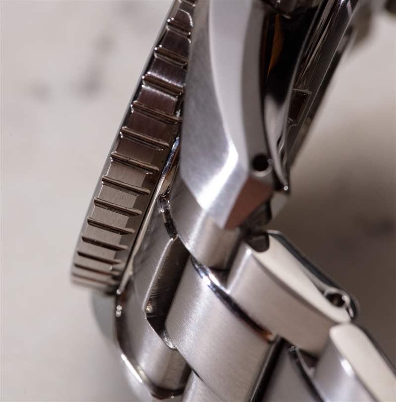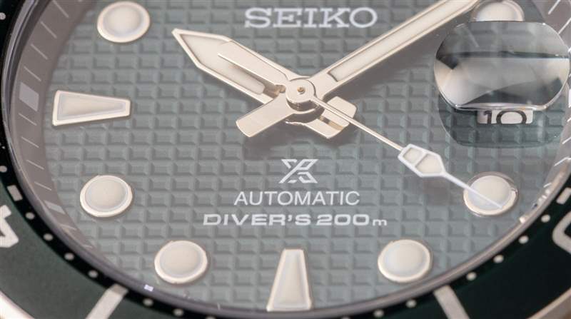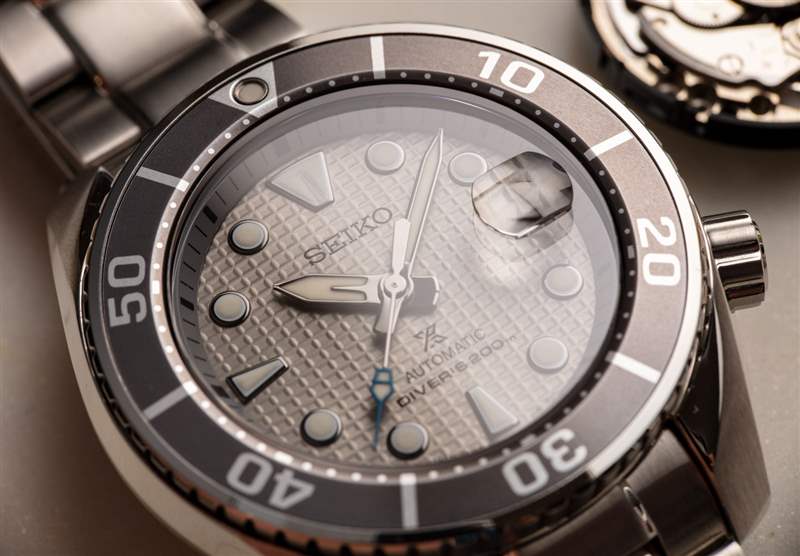除了著名的易讀指針和時標外,精工還使用了迷人的紋理表面。確實,這些 Prospex 手表給人一種更高端的感覺,尤其是與精鋼表殼的出色拋光相結合。然而,單向旋轉表圈中的插件是鋁制的,這可能會讓發燒友喜歡陶瓷表圈插件,就像其他一些精工手表一樣。