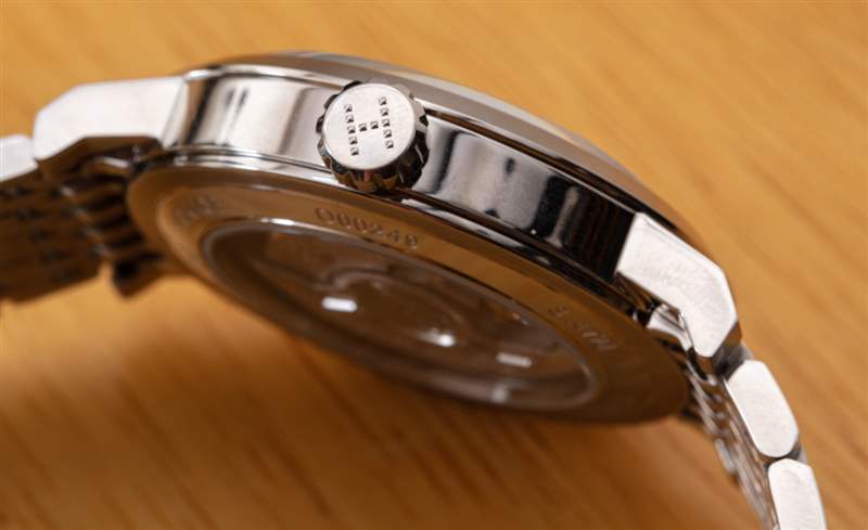 Omnium 表殼尺寸不錯,尺寸合適,比例可以接受,佩戴舒適度很高,但由于某種原因,根據我的手腕解剖結構,當我嘗試調整時,手鐲總是有點太大或太緊手鐲的大小。這不是手表的錯,并且根據個人的解剖結構有時會發生。40 毫米寬的表殼厚度約為 12 毫米,具有非常耐磨的 46 毫米表耳到表耳距離。該表殼僅防水 30 米,考慮到品牌在整體展示中的細節水平,我預計至少 50m 甚至 100m。
