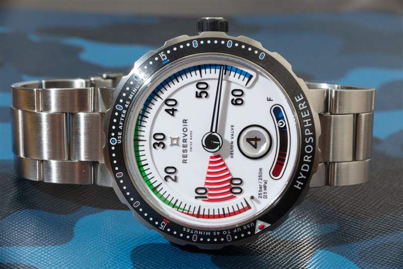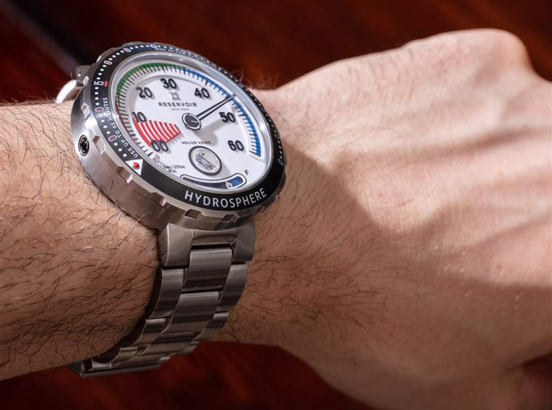 Reservoir 生產(chǎn)了幾個(gè)版本的 Hydrosphere 時(shí)計(jì),其表盤(pán)顏色和表殼材料各不相同。我特別喜歡 Hydrosphere Air Gauge,因?yàn)檎绠a(chǎn)品名稱(chēng)所暗示的那樣,表盤(pán)很容易讓人聯(lián)想到模擬空氣壓力計(jì)。這種特殊的 SCUBA 潛水儀器的一個(gè)有趣的事情是,大多數(shù) BCD 裝置(裝有空氣罐的背心潛水員服裝)都有一個(gè)看起來(lái)幾乎與手表相同的氣壓計(jì)。這意味著今天大多數(shù)休閑潛水員都使用過(guò)這樣的氣壓計(jì)并通過(guò)視覺(jué)識(shí)別它們。為什么這很重要?因?yàn)?Reservoir Hydrosphere Air Gauge 是當(dāng)今僅有的在視覺(jué)上與當(dāng)今潛水設(shè)備相匹配的豪華潛水表之一。這意味著手表表盤(pán)不僅對(duì)手表愛(ài)好者來(lái)說(shuō)既相關(guān)又熟悉,廣告訊息廣告信息結(jié)束