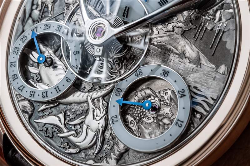 Eddy Jaquet 在距離 MB&F 總部所在地日內瓦不遠的納沙泰爾長大。這家高端鐘表(和傳統)機器制造商以其與制表領域的其他創作者的靈感合作而聞名,但這是該品牌首次與 Eddy Jaquet 合作打造場景風格的手工雕刻表盤。Jacquet 不是周圍唯一的雕刻師,但他特別出色。他不僅專注于創造有趣的、視覺平衡的構圖,而且他的技術也很出色——不僅在于他能夠在如此小的尺度上尊重比例和幾何規則,而且在于他如何使用變暗技術來吸引人們的眼球。表盤上的正確位置。廣告訊息廣告信息結束