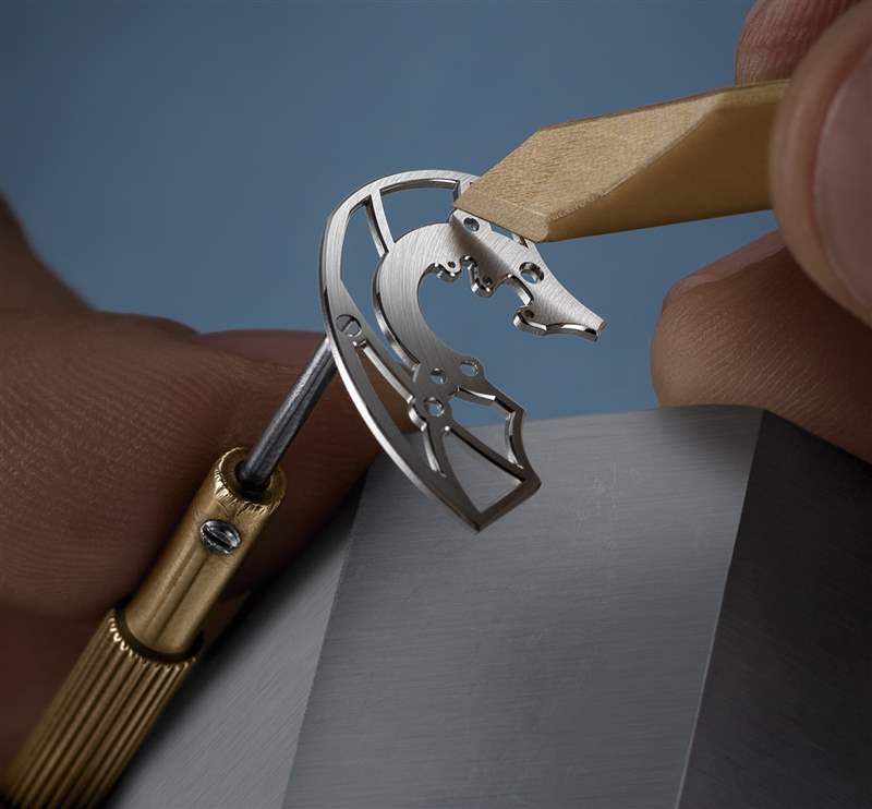 該機(jī)芯由 479 個(gè)不同的零件制成,運(yùn)行頻率為 3 赫茲,動(dòng)力儲(chǔ)存為 65 小時(shí)。自動(dòng)(自動(dòng)上鏈)機(jī)芯提供時(shí)間,一個(gè) 30 分鐘計(jì)時(shí)碼表,帶有飛返復(fù)雜功能(品牌陀飛輪機(jī)芯中的首創(chuàng))作為位于 6 點(diǎn)鐘位置上方的飛行陀飛輪。到目前為止,已經(jīng)有Code 11.59 Tourbillon 手表和Code 11.59 Chronograph 手表,但沒有像小說參考 26399BC.OO.D321CR.01 這樣的其他 Tourbillon Chronograph 手表。