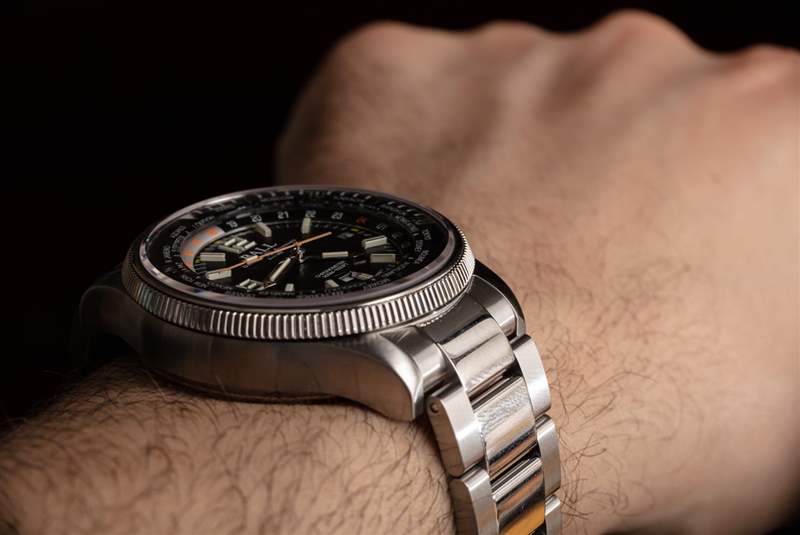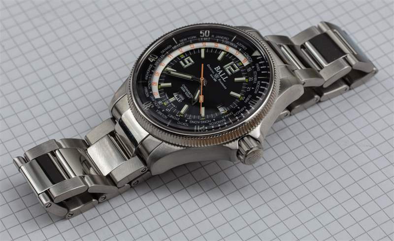 與之前手表的工程師大師 II 型表鏈相比,表殼上附有更傳統(tǒng)的三鏈?zhǔn)戒摻饘俦礞湣1礞溣欣z的外鏈節(jié)和拋光的中心鏈節(jié),這在勞力士迪通拿或 GMT-Master II 等手表中最為流行。在這方面,DG2232A-SC-BK 感覺比上一代 Engineer Master II Diver Worldtime 更“通用”,但外觀時(shí)尚,我認(rèn)為它非常適合時(shí)計(jì)的整體主題。