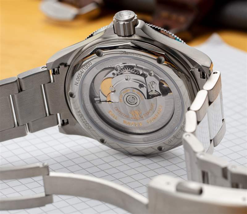 20 毫米寬的手鏈有一個(gè)制作精良的折疊展開式表扣,考慮到半連桿的存在,以及展開式本身的較小孔,它有很多調(diào)節(jié)選項(xiàng)。這是上一代技術(shù),但它仍然可以正常工作。然而,我確實(shí)對(duì)沖壓金屬潛水員的延長(zhǎng)扣有點(diǎn)問題,它感覺不像手表的其他部分那么堅(jiān)固。我真的不覺得這是一個(gè)問題(特別是因?yàn)檫@款手表的一兩個(gè)所有者可能會(huì)真正使用它),但在這個(gè)價(jià)格水平上,我認(rèn)為手表上不應(yīng)該有任何明顯的金屬部件表殼或手鏈。