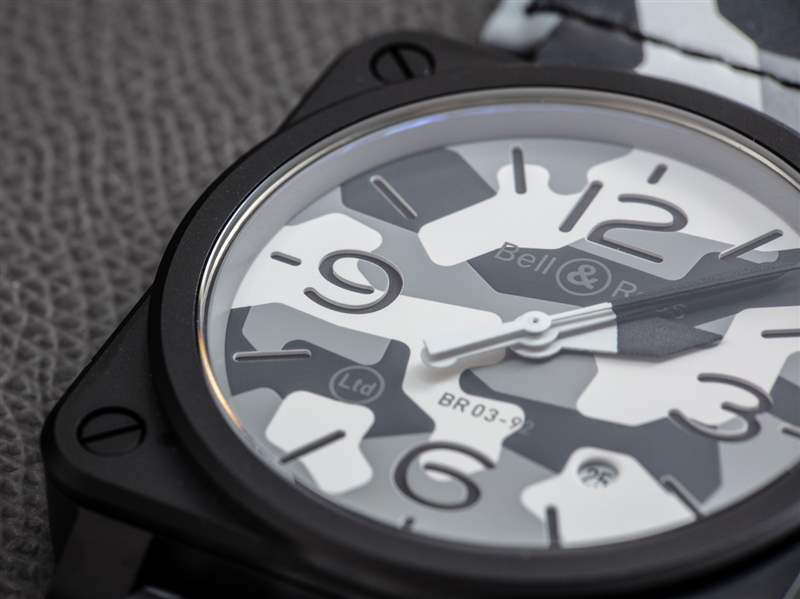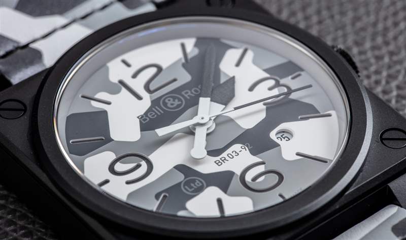 BR 03-92 Camo 是核心 BR 03-92 Instrument 手表的全新限量版,它是較大的 BR 01-03(46 毫米寬)的較小的 42 毫米寬版本。對于這款特殊的產品,Bell & Ross 從啞光黑色陶瓷表殼開始,然后將駕駛艙時鐘風格的表盤呈現為白色和灰色的都市風格迷彩。手表配有兩條表帶。一個是黑色橡膠表帶,另一個是皮革表帶,上面印有相同的白色迷彩圖案。廣告訊息廣告信息結束