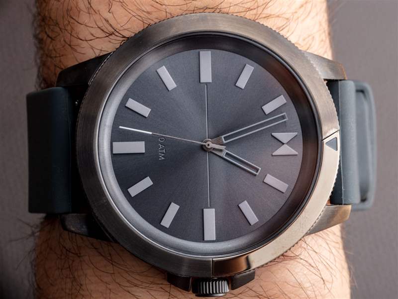 正如名字所承諾的那樣,Minimal Sport 在設計上是極簡主義的,以至于大部分的手都被設計出來了。事實上,這是這款腕表最大的問題,因為令人難以置信的鏤空指針加上沒有發光體(在運動手表上很少見)意味著這款腕表的易讀性略有限制。也就是說,MVMT 客戶看手機的時間比看手表的時間要多,因此不完整的易讀性似乎從未阻礙銷售。