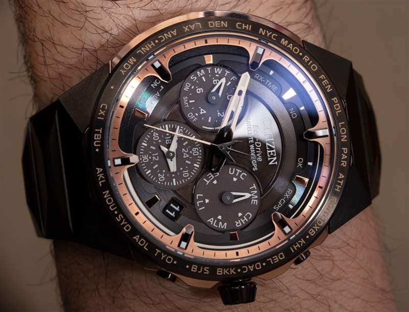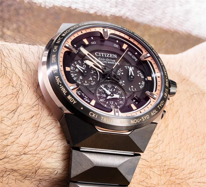 除了與 Super Titanium 表殼和表鏈其余部分的無煙煤色調形成鮮明對比的“Sakura”粉紅金色涂層 Super Titanium 外,該產品還旨在慶祝 Citizen 在 GPS 運動方面取得的成就。日本三大制表商都擁有自己的 GPS 手表——這一重點幾乎完全是日本人(如果不考慮智能手表)。F950 機芯是一個有趣的系統,代表了西鐵城多年來制作的一系列系統。在這方面,西鐵城的動作原則上與卡西歐等品牌的動作相似,隨著時間的推移,持續的改進和新功能不斷積累。