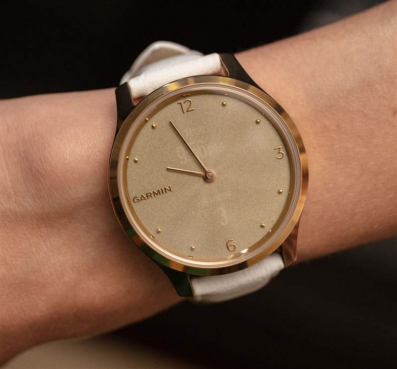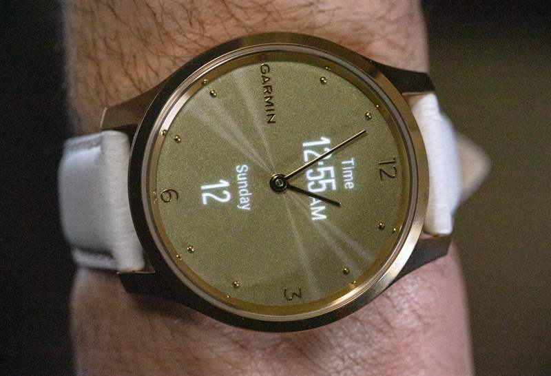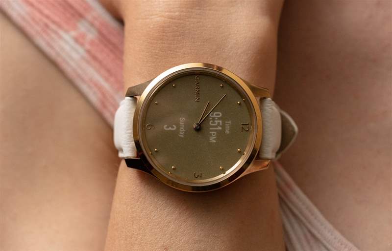在手腕上,Vivomove 在風(fēng)格和吸引力上都應(yīng)該看起來像傳統(tǒng)時(shí)計(jì)。Garmin 盡最大努力將其設(shè)計(jì)成一種更像傳統(tǒng)時(shí)尚手表的形式,而不是遠(yuǎn)足設(shè)備。當(dāng)然,對于有興趣在其職業(yè)或社交服裝中添加智能手表的女性佩戴者來說,Vivomove Luxe 是一個(gè)不錯的選擇。也就是說,或多或少是 Garmin 的賣點(diǎn),即讓人們能夠跟蹤他們的運(yùn)動和活動,而不是通過他們選擇的手表立即宣布這一事實(shí)。