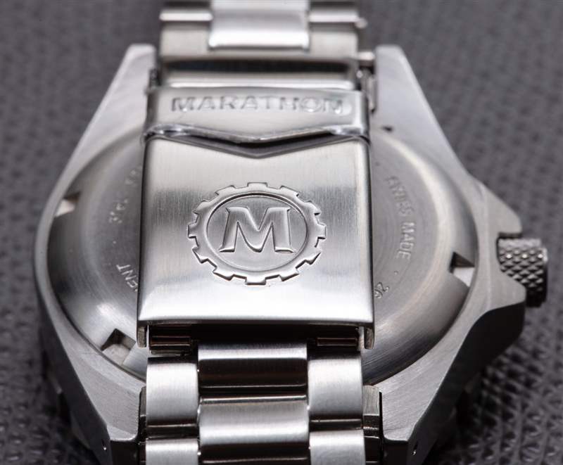 對我來說,Marathon 在 36 毫米北極 MSAR Auto 中所做的最重要的改進是從表盤上去除了 Marathon 圖形標志,并將其放置在表鏈展開扣上。該品牌嘗試在表盤上使用圖形徽標,但這并沒有太大意義(他們是學習這一點的眾多品牌之一)并最終在僅一代產(chǎn)品后將其刪除?,F(xiàn)實情況是,無論出于何種原因,圖形標志往往永遠不會像表盤上的文字標志那樣好看。除非一個品牌足夠光滑,以至于他們的標志可以很好地用作 12 點鐘的小時標記。