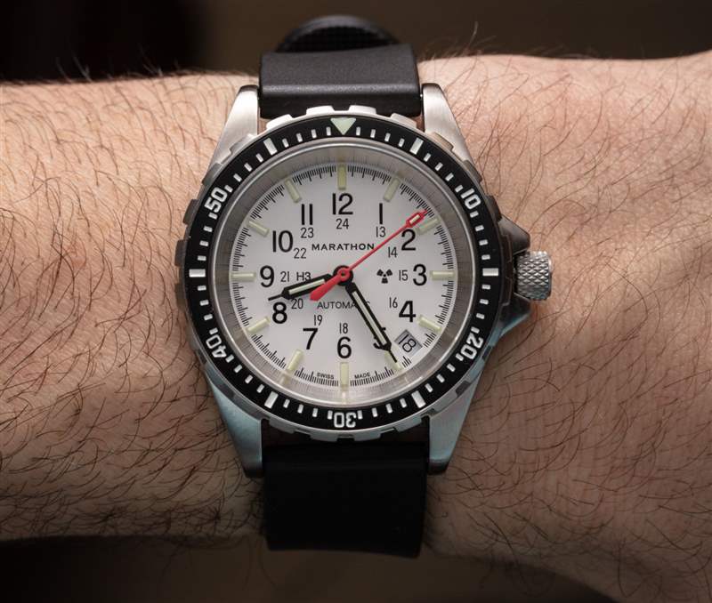 有很多人想要一款自動版的白色表盤 36 毫米 Medium Diver’s Quartz 手表,現(xiàn)在它就在這里。接下來,Marathon 可能會為其較大的時計嘗試白色表盤,例如 40 毫米寬的 GSAR(General Search & Rescue)手表。