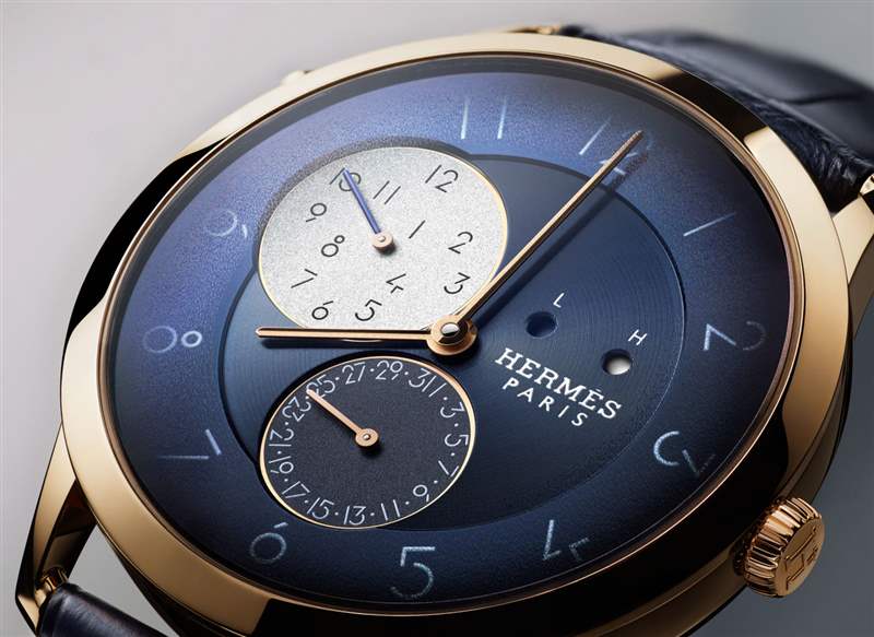 對于Watches & Wonders Digital 2020,愛馬仕推出了成功的“Slim d’Hermès”或“Hermès Slim”(我們稱之為)的全新版本。具有出色外觀的現代正裝腕表系列現在包括一個新的 GMT 系統。Hermès再次與總部位于日內瓦的 Aghenor 合作開發了一個模塊,該模塊采用新穎的方法在同一個表盤上指示兩個時區。Slim d’Hermès GMT 不是限量版,以 18k 玫瑰金首次亮相。