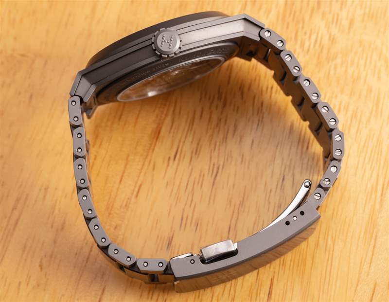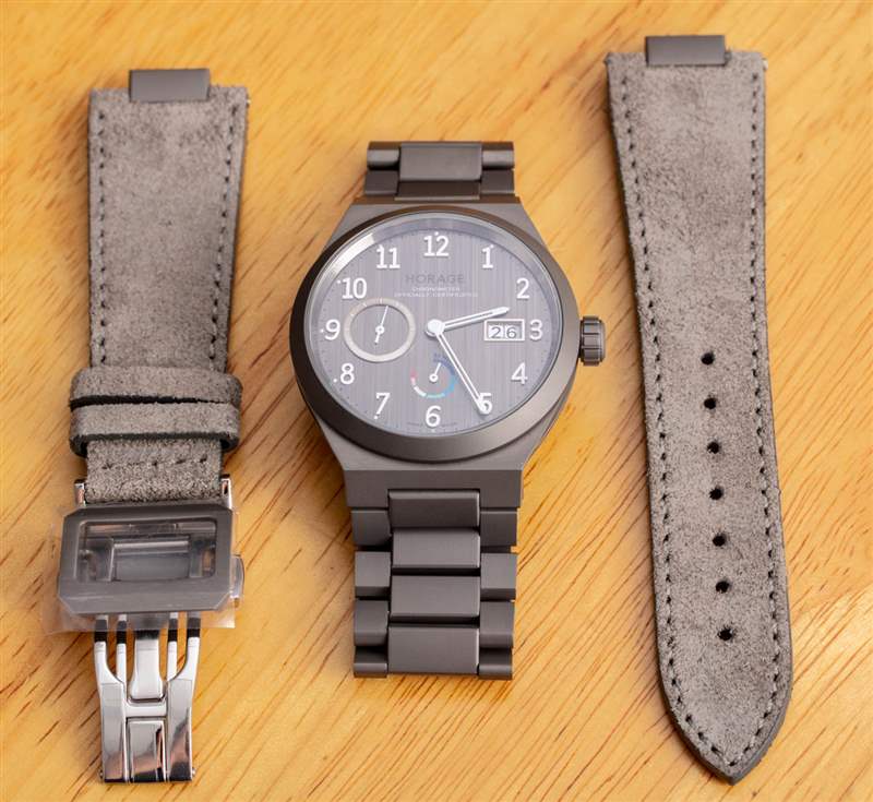 霍拉奇與三鏈鈦手鏈一起加入了第二條表帶。表帶是磨砂皮風格的皮革表帶,優雅地逐漸變細。由于我非常堅持要成為手表手鐲的人,因此出于個人喜好,我可能永遠不會將其他體面的(如果不舒服,則另當別論)手鐲換成表帶。手鐲有一個帶有按鈕釋放的專有展開式表扣。部署者工作得很好,但它的風格有點通用。此外,對我來說,高度拋光的鈦金屬表扣系統與手表其余部分的深色噴珠鈦金屬形成鮮明對比。我希望至少打開扣環的延伸推桿具有匹配的噴砂飾面和顏色。再次,這是一個小問題,可能被展開扣的整體質量所包含(即使是非常昂貴的品牌也容易在很多時候搞砸)。我可以安全地打開和關閉它,這證明了表扣的性能。