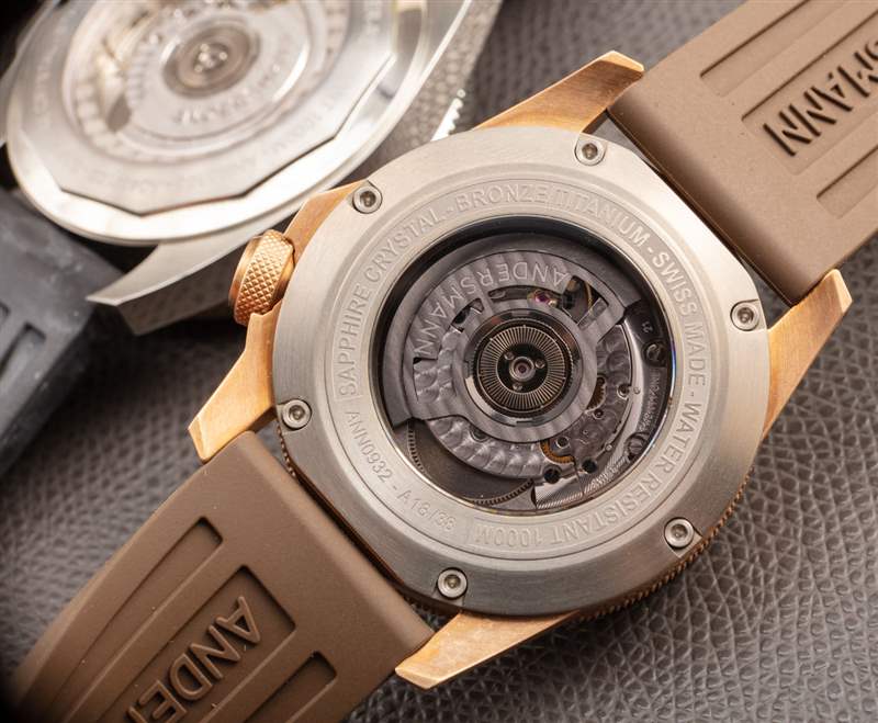 安德斯曼使用青銅、鈦和藍寶石水晶作為主要表殼組件的混合物。底蓋是鈦(帶有藍寶石水晶窗),主表殼是銅和錫混合的青銅 CuSn8 合金混合物,安德斯曼說這是一種相當耐腐蝕的金屬形式。青銅并不是所有鐘表愛好者都選擇的手表材料,但大多數(shù)鐘表愛好者應該在他們的收藏中至少擁有一款青銅鐘表,看看有什么大驚小怪的。青銅首先受益于它的顏色,它“似金”,明顯比鋼更暖色調(diào)。隨著金屬氧化,青銅也會隨著時間的推移而改變顏色。對于某些人來說,這是悲慘的,對他們來說,鋼、金或其他更穩(wěn)定的材料將成為更好的表殼材料。然而,青銅粉絲,