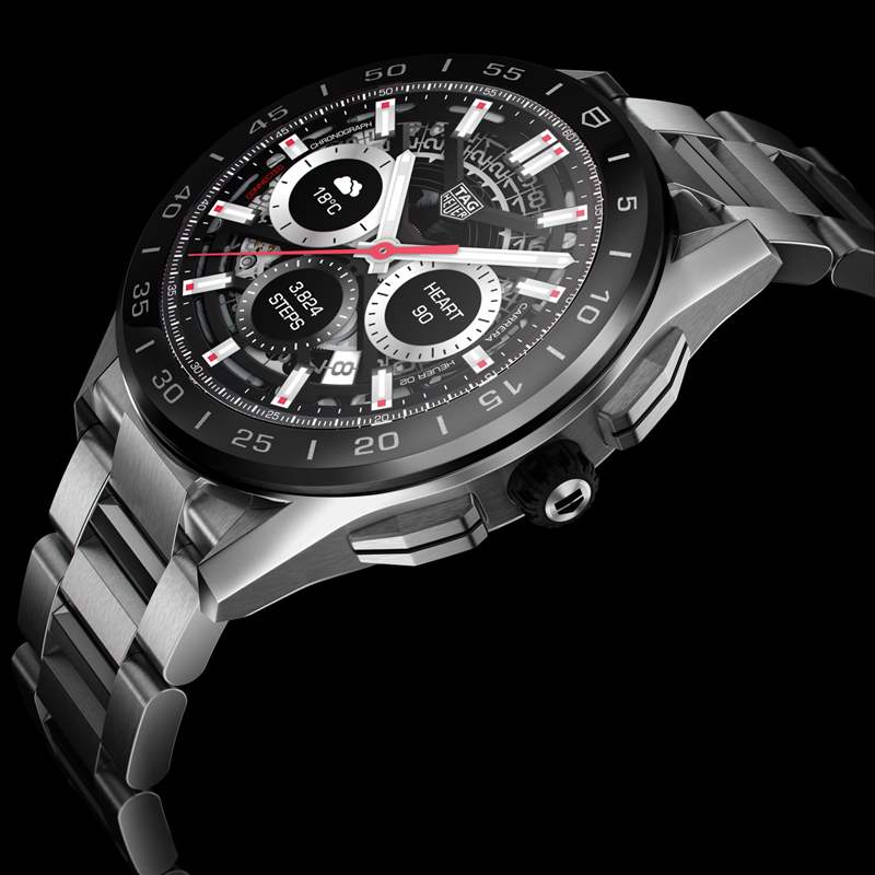 OLED 觸摸屏上方是防刮藍(lán)寶石水晶,屏幕設(shè)計(jì)為具有常亮功能,因此不會(huì)出現(xiàn)空白。TAG Heuer 將生產(chǎn) 2020 TAG Heuer Connected 手表的幾個(gè)版本,包括鈦或鋼表殼的版本。有金屬和陶瓷表圈可供選擇,還有鋼表鏈和各種橡膠表帶。Connected 的表殼針對(duì) 2020 年進(jìn)行了重新設(shè)計(jì),配備了新的有吸引力的按鈕和其他精美細(xì)節(jié),使 2020 Connected 手表顯得與眾不同。