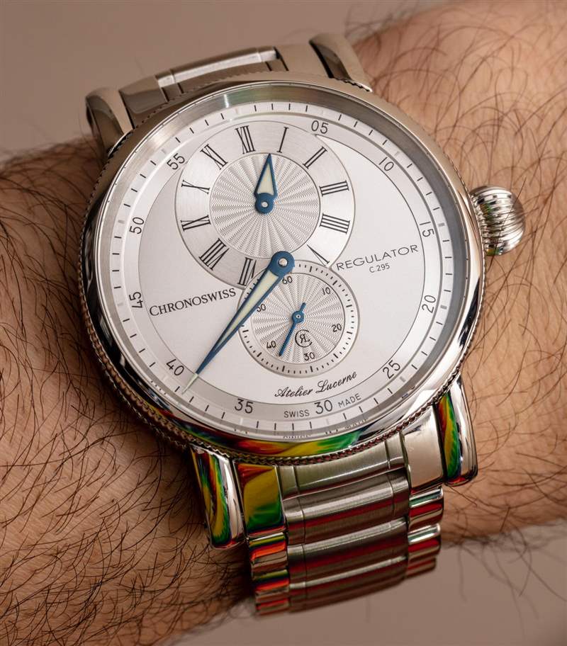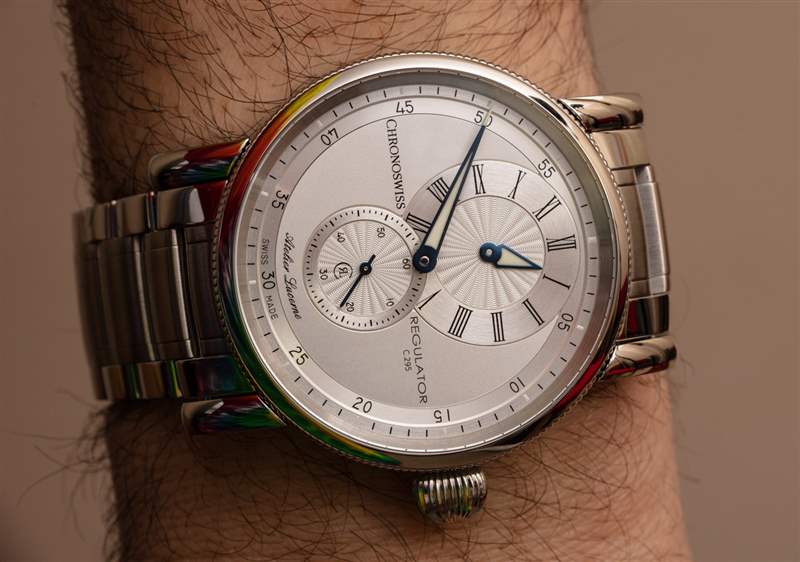 Regulator-style 手表是鐘表表面設計的一種精致,與單純的設計花哨無關。我與其他收藏家談論調(diào)節(jié)器時計的經(jīng)驗是,許多人根本不知道為什么表盤上的分、秒和小時在他們自己的表盤上是分開的。這有一個傳統(tǒng)的原因,我稍后會回到監(jiān)管機構的手表上。首先,讓我介紹一下Chronoswiss?Regulator Classic,它是 Chronoswiss 多年來生產(chǎn)的一系列調(diào)節(jié)器式時計之一。今天,我回顧了參考 CH-8773-SI Regulator Classic 的 41 毫米寬形式,帶有銀色表盤和相配的鋼表鏈。