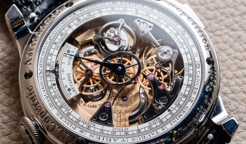 為了與“天文”主題保持一致,在腕表年份還有一個時間等式指示器。我很高興在手表背面看到這種復雜功能,因為盡管它很酷,但沒有人真正需要看它。手表后部還有一個用于日歷的外圍指示器,強調還指示當前的生肖。