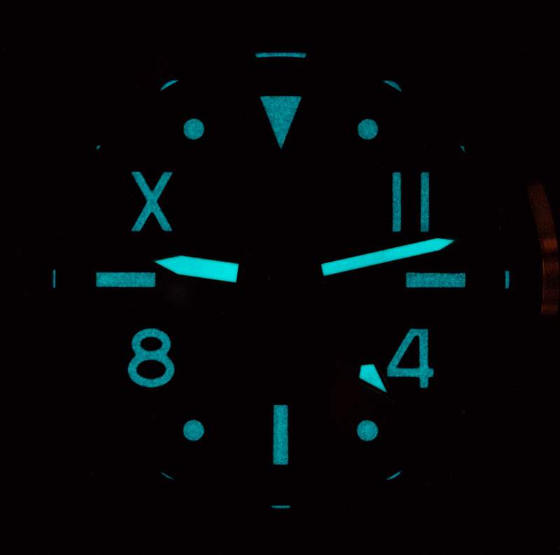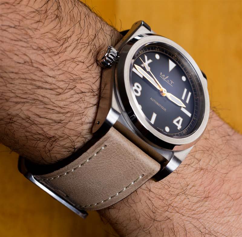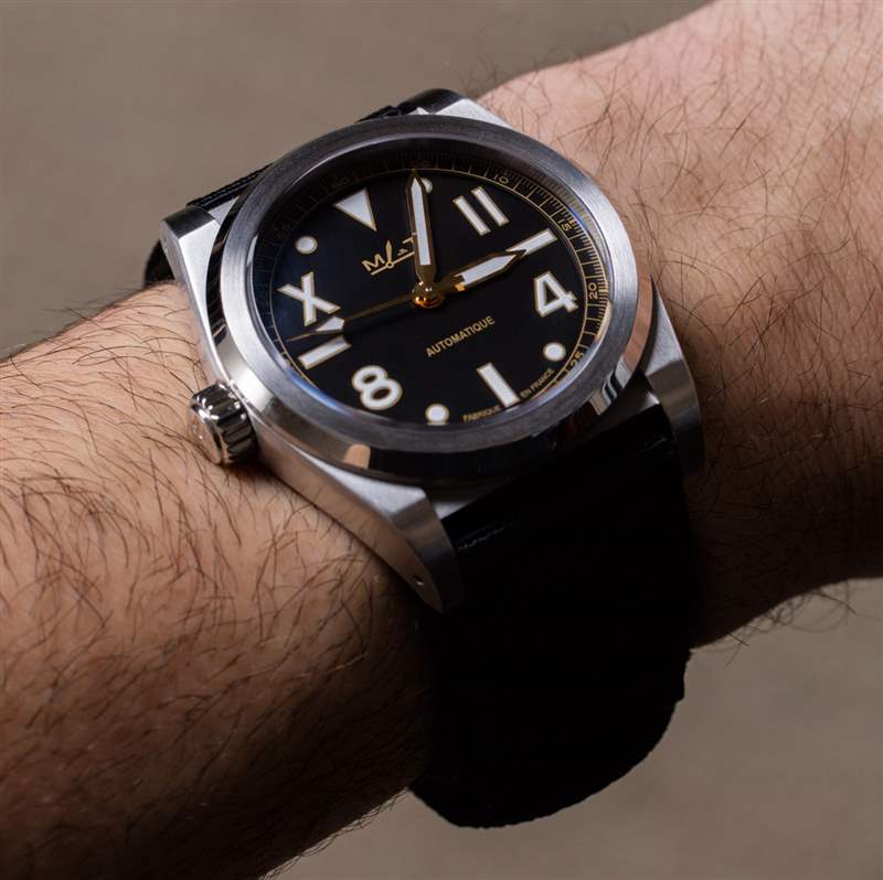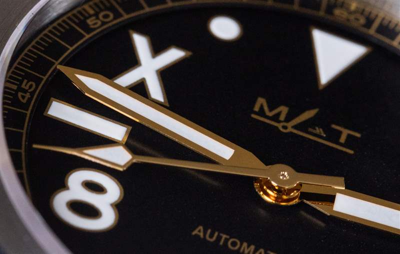 加利福尼亞,作為一個(gè)名字,之所以吸引我,是因?yàn)槲襾?lái)自加利福尼亞,但也因?yàn)槲乙恢睂?duì)加利福尼亞表盤的時(shí)計(jì)著迷。我相信這些都是從勞力士模型開始的,還有一些沛納海手表也有加州表盤。我在加州表盤上的歷史是模糊的,但我相信這個(gè)名字源于很久以前,加利福尼亞的一位手表經(jīng)銷商從勞力士訂購(gòu)了這種風(fēng)格的表盤,并且“加州表盤”的名字被卡住了。什么是加州表盤?一般來(lái)說(shuō),它是一種設(shè)計(jì),其中一半的時(shí)標(biāo)寫成阿拉伯?dāng)?shù)字,另一半寫成羅馬數(shù)字。我不相信這種安排有任何功能上的原因,但它看起來(lái)確實(shí)很有趣。MAT 對(duì)加利福尼亞表盤的設(shè)計(jì)與您在經(jīng)典勞力士或一些當(dāng)代沛納海手表表盤上看到的不同,并且似乎將 Submariner 風(fēng)格的表盤與加利福尼亞表盤美學(xué)相結(jié)合。MAT California 表盤上,10 點(diǎn)鐘和 2 點(diǎn)鐘的時(shí)標(biāo)是羅馬數(shù)字,8 點(diǎn)鐘和 4 點(diǎn)鐘的時(shí)標(biāo)是阿拉伯?dāng)?shù)字。其他小時(shí)標(biāo)記是形狀。
