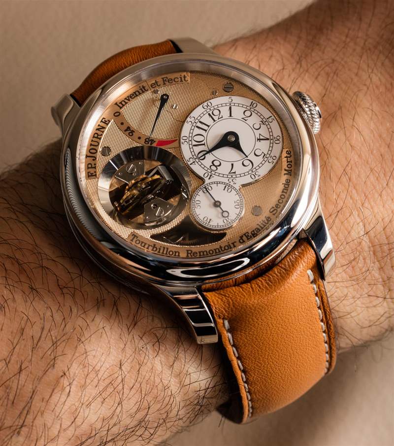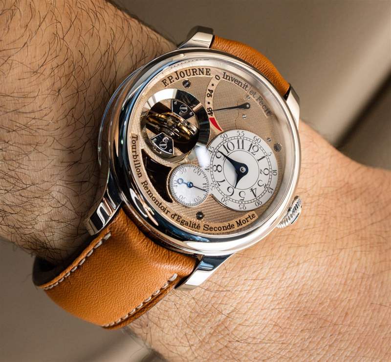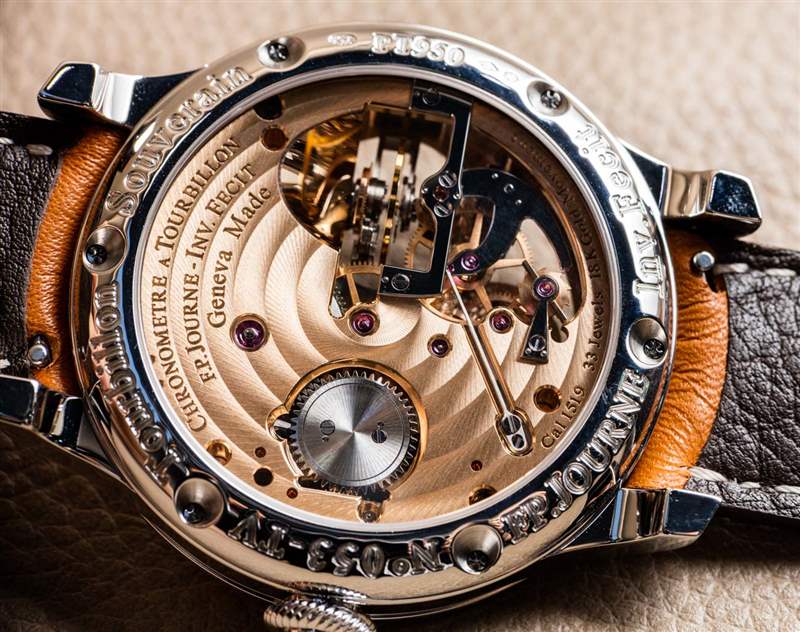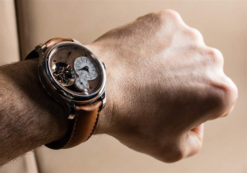 表殼、表盤(pán)和機(jī)芯的拋光和裝飾通常是一流的,整體上也是一流的。FP Journe 進(jìn)一步確保其所有手表都舒適且適合日常佩戴。這里也不例外。即使是蜜棕色的小牛皮表帶,也與表盤(pán)和表殼的其他色調(diào)完美搭配,十分時(shí)尚。