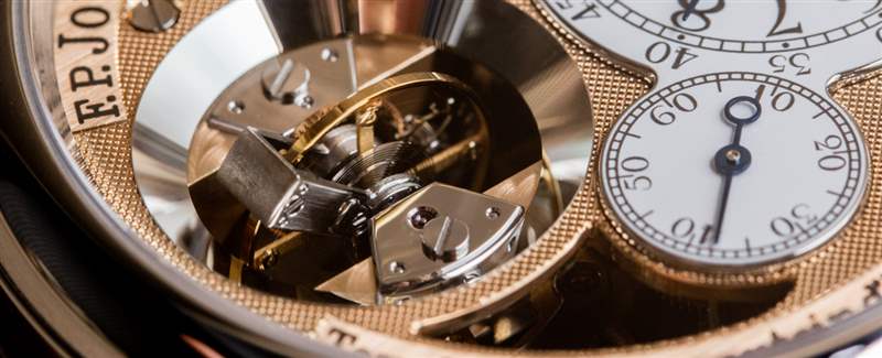 因此,讓我們立即討論陀飛輪,因?yàn)檫@是最新版本(或任何版本)陀飛輪 Souverain 存在的全部原因。手表的核心概念總是有一個(gè)陀飛輪(帶有一個(gè)穩(wěn)定速率的remontoir),然后是一個(gè)帶有死秒針的,現(xiàn)在這些功能通過(guò)垂直安裝的陀飛輪來(lái)補(bǔ)充。