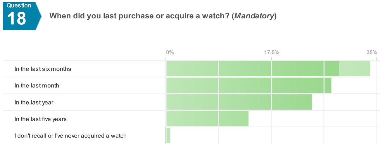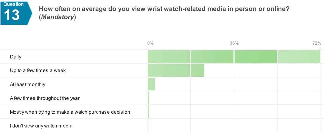 2019年10月和11月,aBlogtoWatch舉行了一次大型受眾調(diào)查,它旨在為許多問題提供答案。該調(diào)查的主要目的是收集有關(guān)手表愛好者消費者情緒的學(xué)術(shù)研究數(shù)據(jù)。2,000 名 aBlogtoWatch 受眾成員提供的數(shù)據(jù)為手表品牌營銷工作未能有效針對可能的客戶群體的理論提供了實證依據(jù)。明確的數(shù)據(jù)表明,高達 80% 的手表愛好者沒有被手表品牌的廣告信息有效地接觸到。隨后,歷史上可能與非常重要的手表愛好者群體保持密切關(guān)系的品牌錯過了與他們最重要的客戶群體的關(guān)系。雖然本文的目的不是討論該研究項目的全部發(fā)現(xiàn),但事實上,