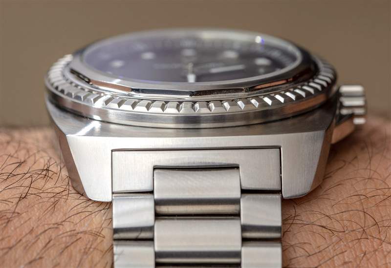 Favre-Leuba 在帶襯墊的皮革表帶或這款配套的鋼手鏈上提供 Raider Sea King。鑒于我是一個“手鐲人”,我更喜歡后者。我不僅總體上覺得手表通常戴在手鐲上會更好看,而且在這種情況下,我覺得手鐲似乎真的有助于完成主題。那是什么主題?很難確定 Favre-Leuba 在設計它時的設想(也許是為某些海洋統治者設計的?),但很明顯,該產品旨在成為該品牌其他更嚴肅的產品的更休閑/考究的伴侶冒險產品。對我來說,吸引力在于簡單、舒適、有吸引力的日常穿著,看起來不像普通手表或其他手表。總結手表搜索的一種方法是,收藏家尋找既有吸引力又與眾不同的東西。有時獲得后一部分比第一部分更具挑戰性,因為這意味著一個產品不能看起來像其他產品。在設計中保持“熟悉感”的同時管理這一點是一項絕對挑戰,只有大師級的手表設計師通常才能做到正確。